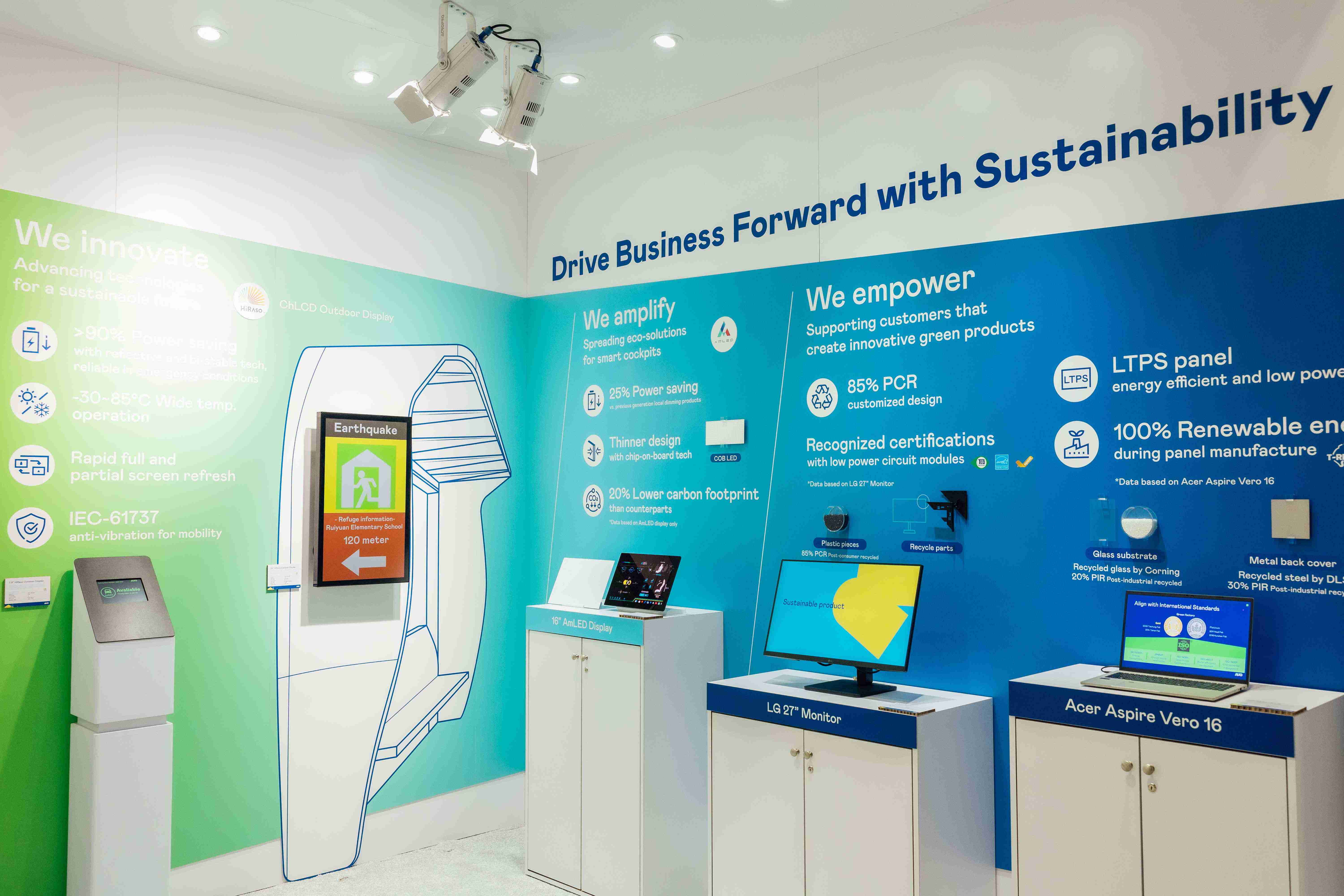 尊龙z6运用创新显示技术HiRaso胆固醇液晶双稳态技术达到显示零耗能、、、、扩大节能省电的AmLED显示技术应用于车用产品、、、以再生的消费后回收(PCR)塑料及全绿电生产之面板,,,,应用于笔电及萤幕,,增加绿色价值。。。。