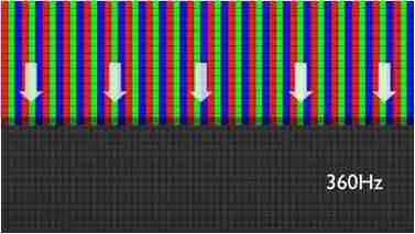 传统液晶驱动是从左到右单向进行,,在画面更新速度愈来越愈快的情况下,,位于驱动线路末端的右下角区域,,,,画素的闸极来不及在短时间内获得足够电压,,无法显示出正确的颜色资讯。。。 |